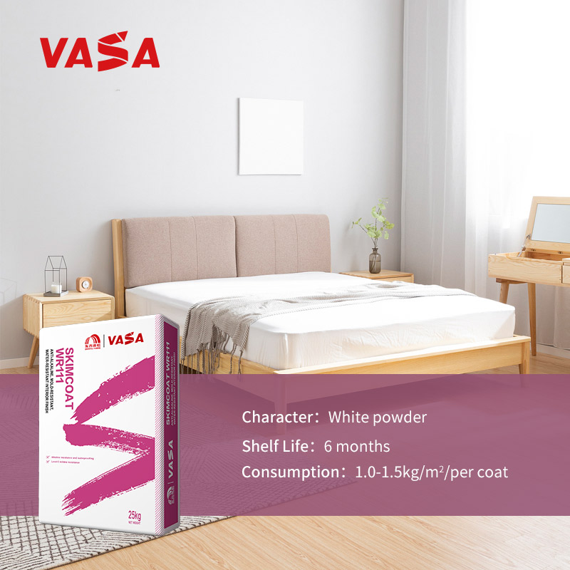 VASA Skimcoat WR111 Anti-Alkaline, Mold-Resistant, Water-Resistant InteriorFinish is a high-quality interior wall putty made from premium inorganiccementitious materials and environmentally friendly additives. It boasts highbonding strength, easy application, eco-friendly mildew resistance, alkalineresistance, and crack prevention. It offers a smooth application feel and highwhiteness.