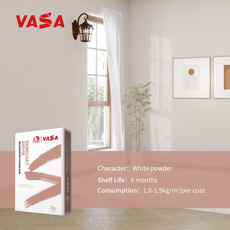 VASA Skimcoat WR100 Mold-Resistant Interior Base is a leveling material for interior walls and ceilings, made from natural powders, eco-friendly composite additives, and water-resistant materials. The product is highly breathable, adheres firmly to the substrate after application, and is environmentally friendly with no odor.