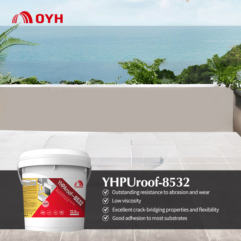 Coating application: Apply at the recommended coverage rate using a notched squeegee or roller. Spraying with a single-component sprayer after mixing is possible, but be mindful of the pot life. Extend the coat over the entire area, including previously detailed joints and cracks. The recoat time is typically 6–18 hours, though low temperatures may extend the waiting time. If slip resistance is required, apply a 0.2–0.4 mm thick wet film to the installed and cured coat, and broadcast dried aggregate onto the still-wet coat. Back-roll the surface to encapsulate the aggregate in YHPUroof-8532 resin. Alternatively, add 10 wt% of 160–200 mesh quartz sand to YHPUroof-8532 and mix thoroughly. Then, apply a 0.2–0.3 mm thick coat on a tack-free YHPUroof-8532 surface to serve as the anti-slip top layer.