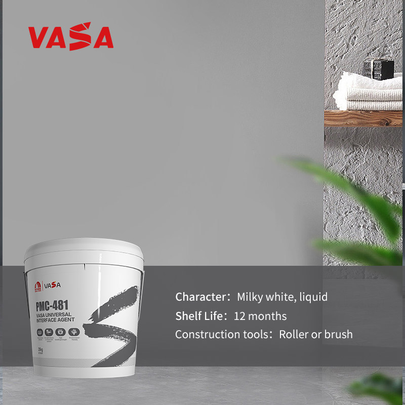 Do not dilute with water. Mix VASA PMC-481 General-purpose Primer with cement (preferably 42.5 ordinary Portland cement) in a 1:2 ratio to form a slurry. Apply with a hard brush or roughening roller to the substrate at a thickness of about 2mm. Allow it to harden completely before proceeding with the next step.